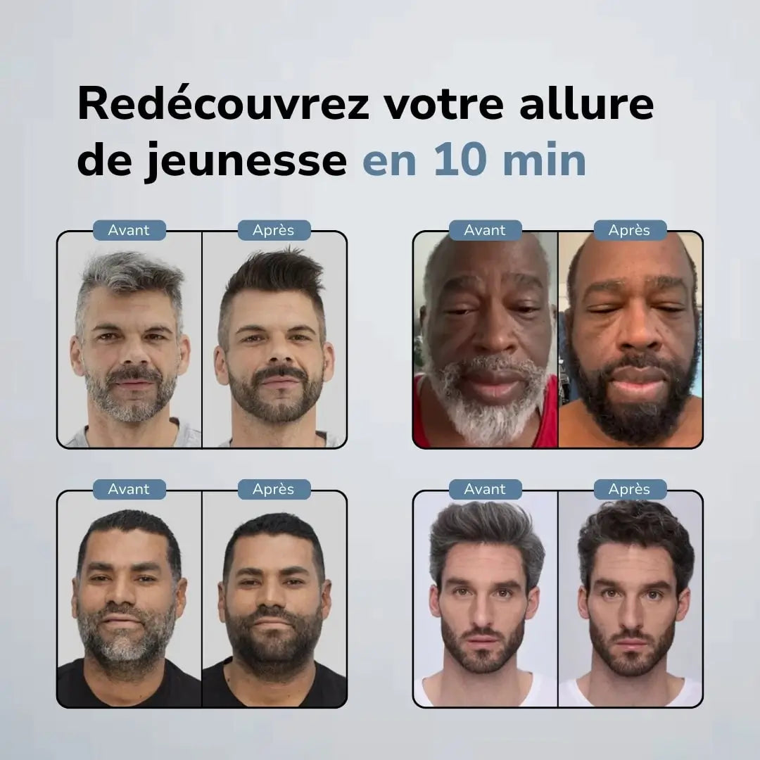 Corentin D.Achat vérifiéÀ 60 ans, barbe blanche et cheveux très clairs. Une application suffit pour foncer légèrement. Le tout reste discret et naturel.
